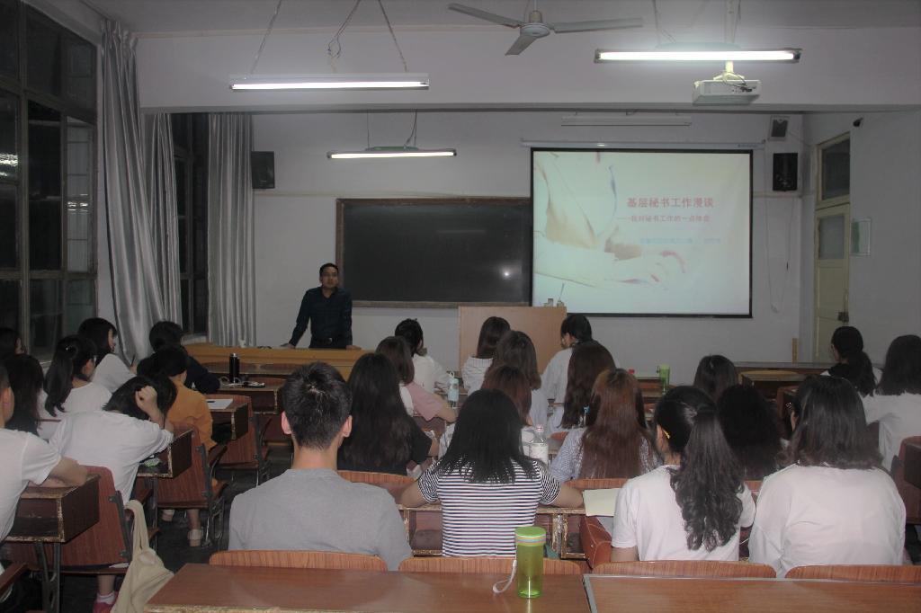 2018年5月3日晚,安康市财政局办公室秘书张宏亮应邀为pp电子游戏平台官网秘书学专业学生做了题为“基层秘书职业与工作漫谈——我对秘书工作的一点体会”的专题讲座。本讲座为秘书学专业职业发展与创新创业教育类课程“行业企业问题讲座”的最后一讲。
