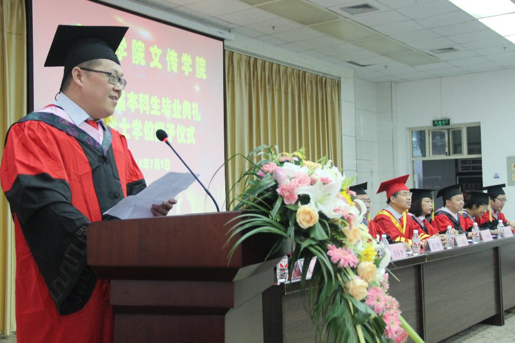 优秀毕业生代表汉语言文学专业许昭阳代表全体毕业生作了题为《文传有梦不负韶华 时代召唤 砥砺前行》发言,对母校、对老师们表达了深深的谢意,为同学们送出了真诚的祝福。