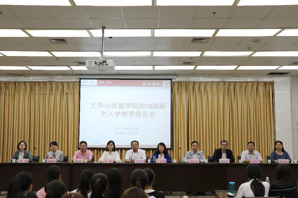 金秋九月,桂花飘香。2018年9月20日晚7点30分,pp电子游戏平台网站在图书馆六楼报告厅举办2018级新生见面会暨入学教育讲座第一讲。pp电子游戏平台网站院长、党总支副书记戴承元因公出差未能参加,党总支书记、副院长于咏梅,副院长梁卫华、杨运庚,汉语言文学系系主任李婷,语文公共教研室主任周龙田,秘书与新媒体系主任胡少山,党政办公室主任杨海蓉,学工办主任沈菲,辅导员邹棠华、艾全霞和2018级全体新生参加。见面会及讲座由梁卫华主持。