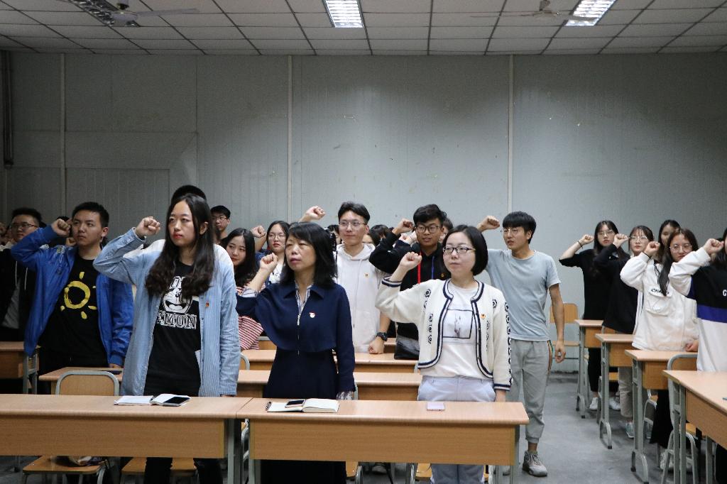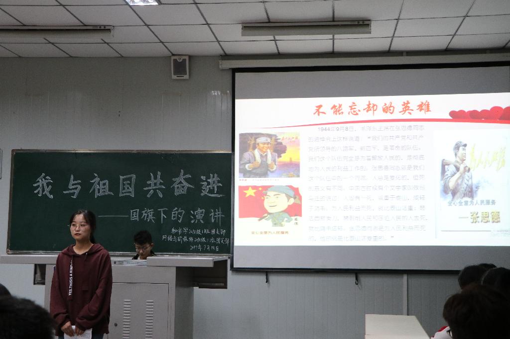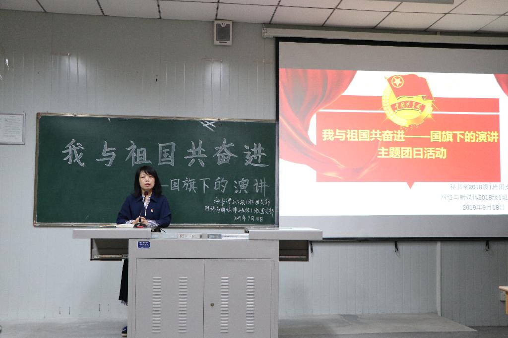 2019年9月18日下午14点,秘书学2018级1班团支部和网络与新媒体2018级1班团支部率先在十号教学楼1013室联合举办了“我与祖国共奋进——国旗下的演讲”主题团日活动,pp电子游戏平台网站党总支书记于咏梅、学工办主任沈菲、辅导员彭潇参加了本次活动。