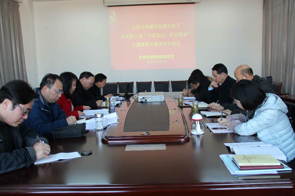 2019年12月9日下午16:00,pp电子游戏平台网站党总支在陕南民间文化研究中心会议室召开学院领导班子及处级领导干部“不忘初心、牢记使命”主题教育专题民主生活会。学院领导班子全体成员参加会议,中心组其他成员列席会议,党委书记王国良、招就处长丁义国全程参会进行指导督导。会议由党总支书记于咏梅主持。