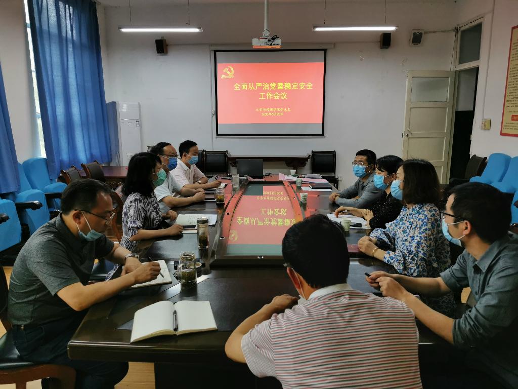 2020年5月20日下午14:30,pp电子游戏平台网站党总支在2307室召开了2020年全面从严治党暨稳定安全工作会议。pp电子游戏平台网站领导班子及中心组全体成员出席会议,会议由于咏梅主持。