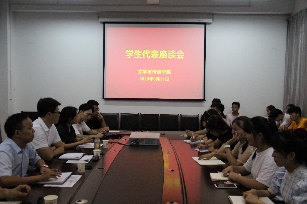 为更好地落实学校以案促改工作要求,充分听取学生意见建议,贯彻以学生为中心的理念,进一步提升学院综合管理水平,促进学院科学发展,2020年8月31日晚7点,pp电子游戏平台网站在陕南民间文化研究中心会议室召开了学生代表座谈会。pp电子游戏平台网站党政领导班子成员及全院各班级的学生代表参加了座谈会,会议由党总支副书记杨海蓉主持。