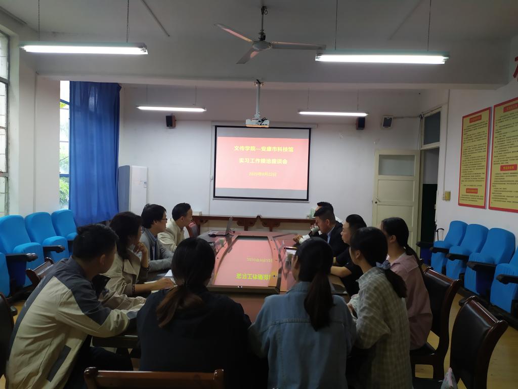 9月22日下午,pp电子游戏平台网站召开了秘书学专业2017级校外实习工作接洽座谈会。pp电子游戏平台网站院长杨运庚、副院长朱云,安康市科技馆馆长刘正武、副馆长陈同磊,校内实习指导老师张燕以及6名实习学生参加了座谈。座谈会由朱云副院长主持。