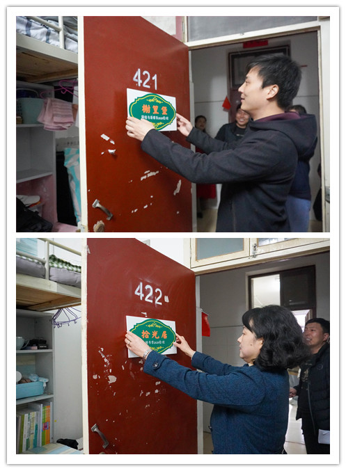 学工部副部长钟泽斌宣布pp电子游戏平台网站第二届宿舍风采大赛正式启动。出席启动仪式嘉宾为2020级新生宿舍授予了雅名门牌,并前往学生宿舍张贴门牌。