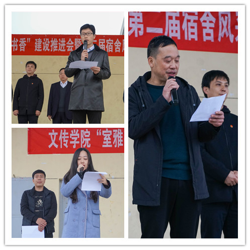 党总支书记芦伟、团总支书记彭潇分别宣读了《pp电子游戏平台网站党建培育项目“室雅书香”文明宿舍评测指标》及《pp电子游戏平台网站宿舍风采大赛评分细则》。2020级学生宿舍舍长代表聂语聪做表态发言。
