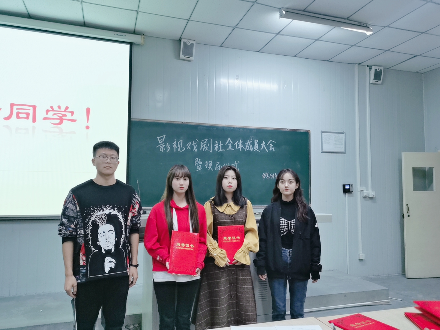 会中,副社长雷孟醒宣读了学生干部任职名单,并由社长和副社长为各部门学生干部颁发聘书,2020级网络与新媒体专业的刘诚代表新社员做了简短发言。之后,全体成员观看了戏剧社近期刚拍摄完成的、“陕西好家风”参赛作品微电影《微信支付》,这也是此微电影的首映,同学们通过这部电影加深了对剧社的印象,也希望此后能参与到微电影的拍摄。