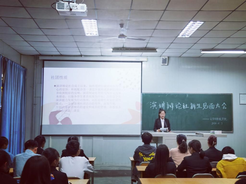 2020年11月7日下午18时30分,pp电子游戏平台网站演讲辩论社在江南校区1012教室成功举办了换届大会暨新生见面会。参与本次见面会的有演讲辩论社指导教师余珊、前任社长王旭、新任社长南宁及116位社员。会议由杨钰主持。