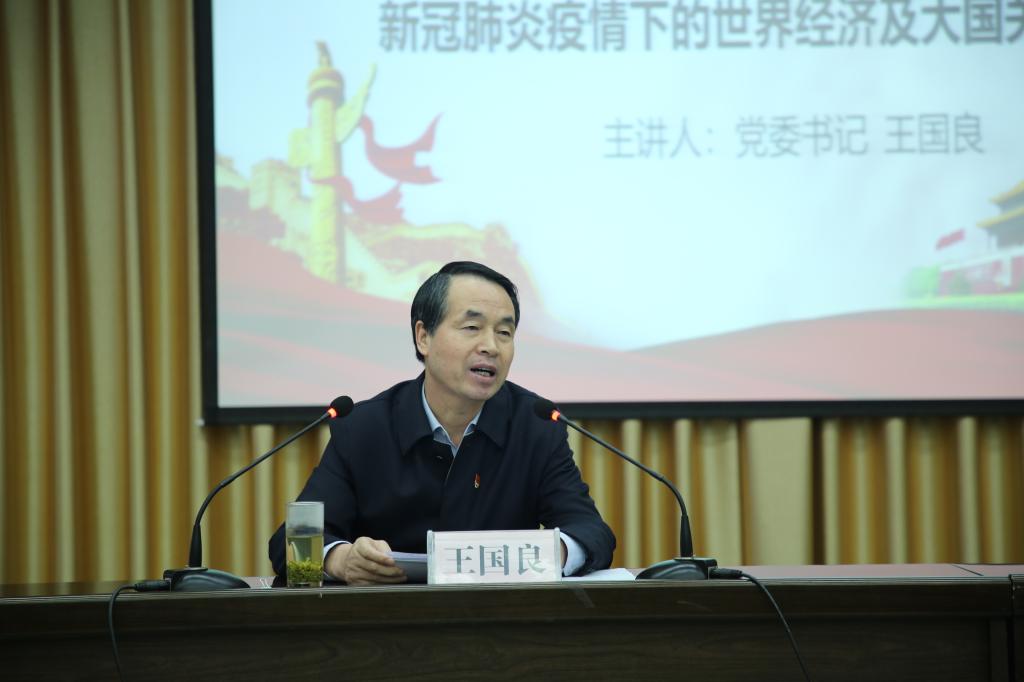 10月28日下午,学校党委书记王国良在图书馆六楼报告厅为pp电子游戏平台网站师生和直属二党支部党员讲授题为“新冠肺炎疫情下的世界经济及大国关系”的形势与政策课。学习会议由pp电子游戏平台网站党总支书记芦伟主持。