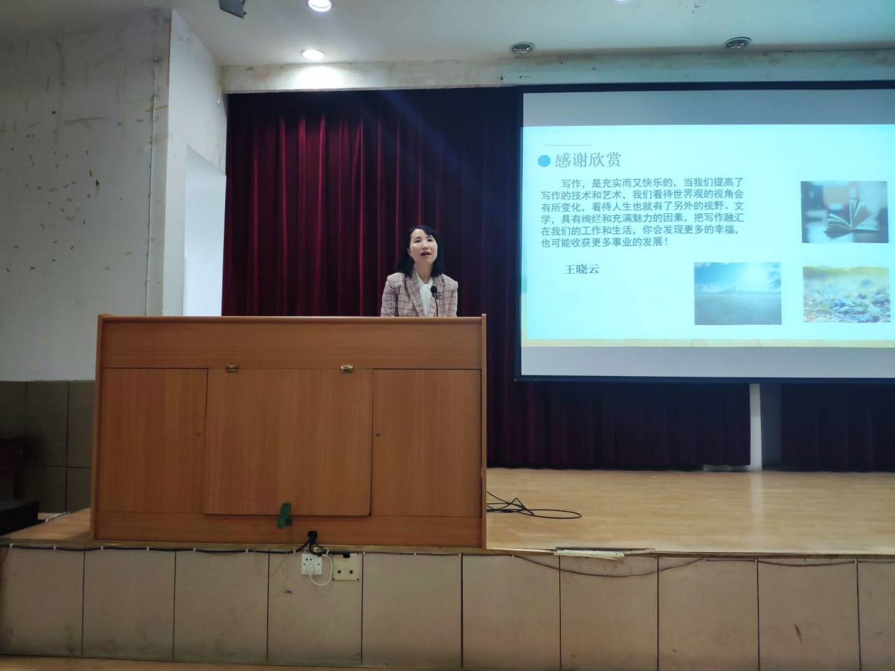 2020年12月8日,晚七点整,著名作家王晓云应pp电子游戏平台网站邀请,在江南1号教学楼报告厅与基础写作任课教师韩文霞一起,为汉语言文学专业2020级学生讲授“小说创作”一课。同学们对王晓云老师的到来表示热烈的欢迎。汉语言文学系主任李婷到场听课。