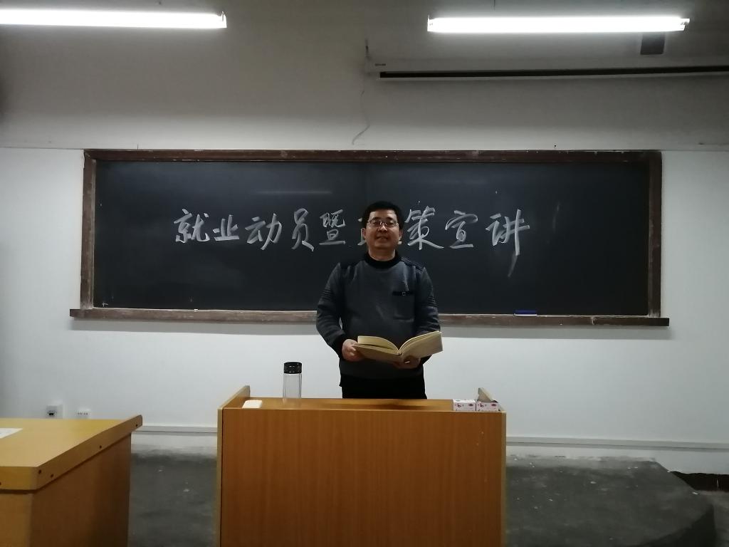 邹棠华同志针对汉语言文学、秘书学、网络与新媒体三个专业的不同特点,分别介绍了就业方向和目前的就业市场情况,向学生整体介绍了国家关于大学生就业、创业、应征入伍等相关政策,介绍了往届毕业生考研、公务员及事业单位招考、企业单位招聘等情况,号召学生结合自身条件,量体裁衣,早做就业规划、早做就业准备,提醒大家不要好高骛远,不要求安求稳,要脚踏实地,先就业,再择业,用辛勤的汗水为自己创造满意的未来,为家庭交一份满意答卷,为社会发展尽一份应尽责任,在奋斗中体现自己的人生价值。邹棠华同志也耐心解答了同学的提问,消除了部分同学的就业顾虑与困惑。