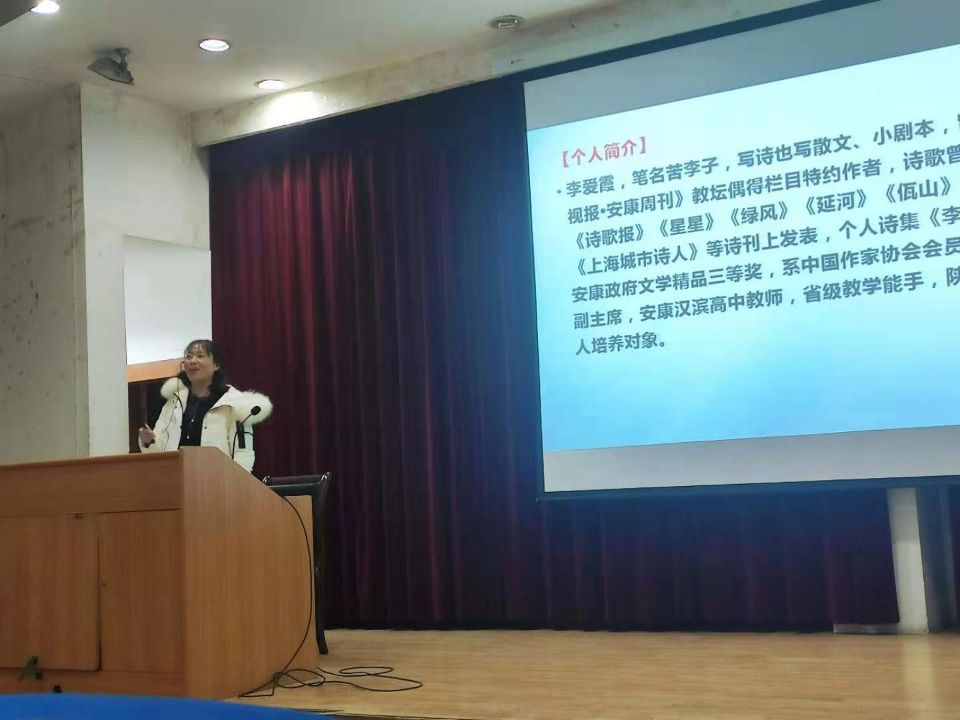 2020年12月14日晚7点,李爱霞老师应pp电子游戏平台网站之邀,在江南校区1号教学楼报告厅为汉语言文学专业2020级学生讲授诗歌专题,同学们对李老师的到来表示热烈欢迎,基础写作课教师韩文霞全程参与教学活动。