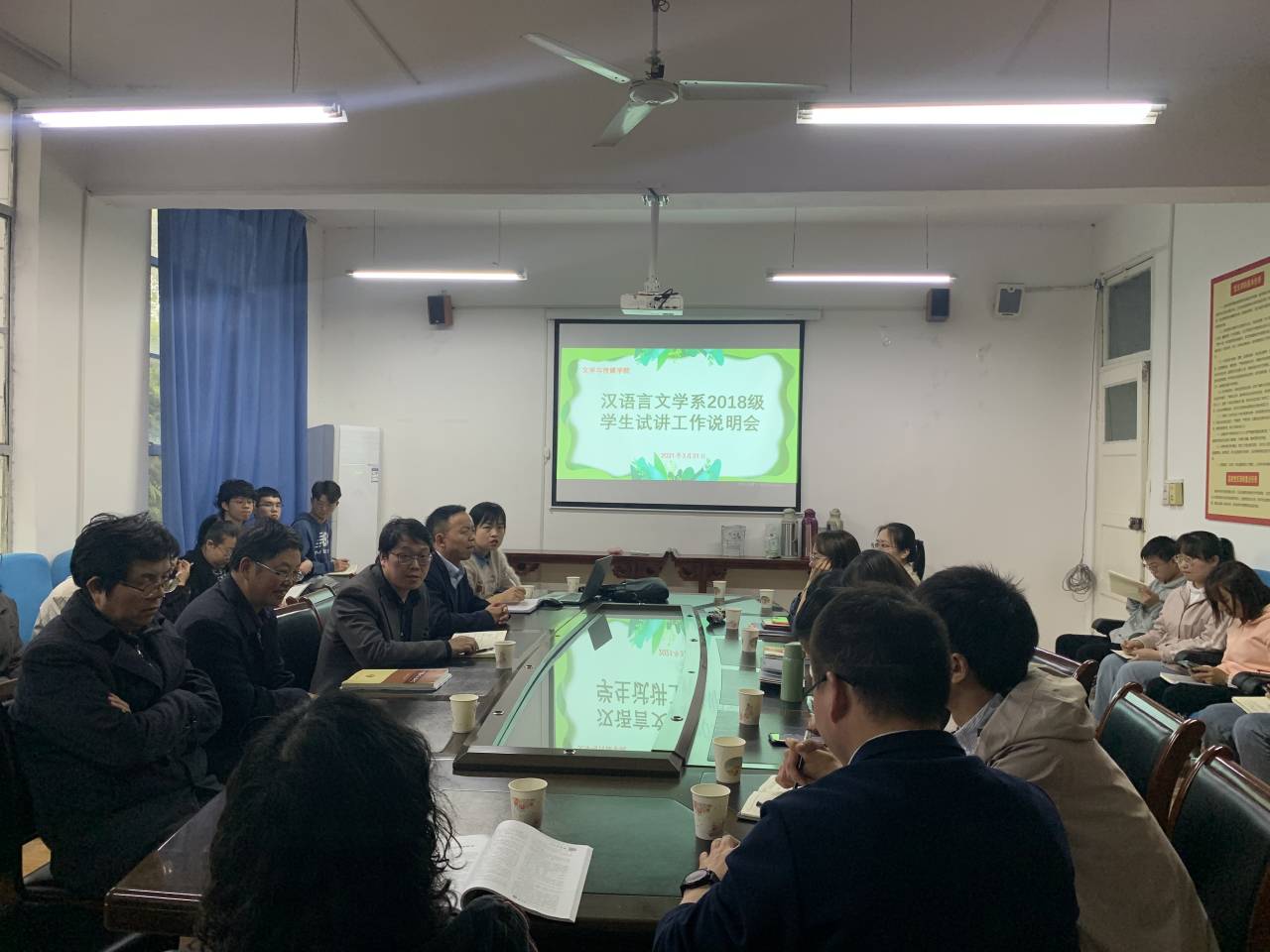 2021年3月31日下午,汉语言文学系2018级试讲工作说明会在2307会议室顺利召开。pp电子游戏平台网站院长杨运庚、副院长朱云,全体指导教师以及2018级学生试讲小组组长参加会议。会议由汉语言文学系主任李婷主持。
