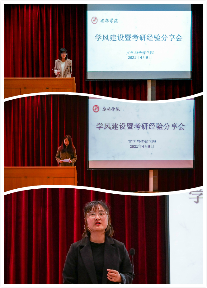 随后,2017级三位考研上岸的同学为备考的同学作学习经验、考研准备经验交流分享。