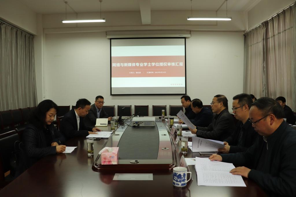 pp电子游戏平台网站院长杨运庚代表学院就网络与新媒体专业的专业特色、师资力量、办学条件、教学运行和管理、科研成果、学生成果等进行了详细汇报。与会专家听取汇报后,认真审阅了申报材料,走访了实训室,并分两个小组与教师代表和学生代表开展座谈。座谈会后,专家组成员对申报材料、走访座谈情况进行了反馈,并对网络与新媒体专业的下一步建设提出了中肯的建议。最后,专家组投票表决,一致认为网络与新媒体专业已经具备授予学士学位的基本条件,同意增列为学士学位授权专业。