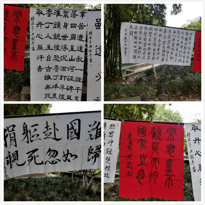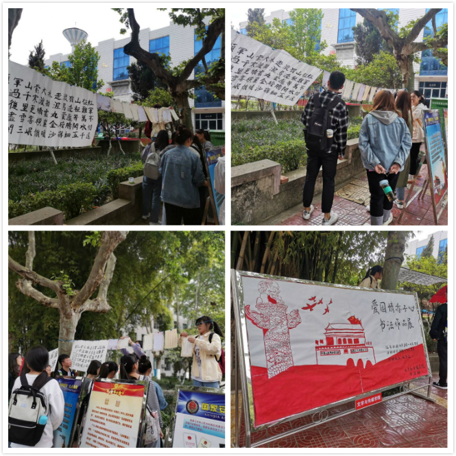 2021年4月19日中午12:00,pp电子游戏平台网站书法社在林荫道成功举办了“弘扬爱国精神,书写赤子之心”的书法作品展。