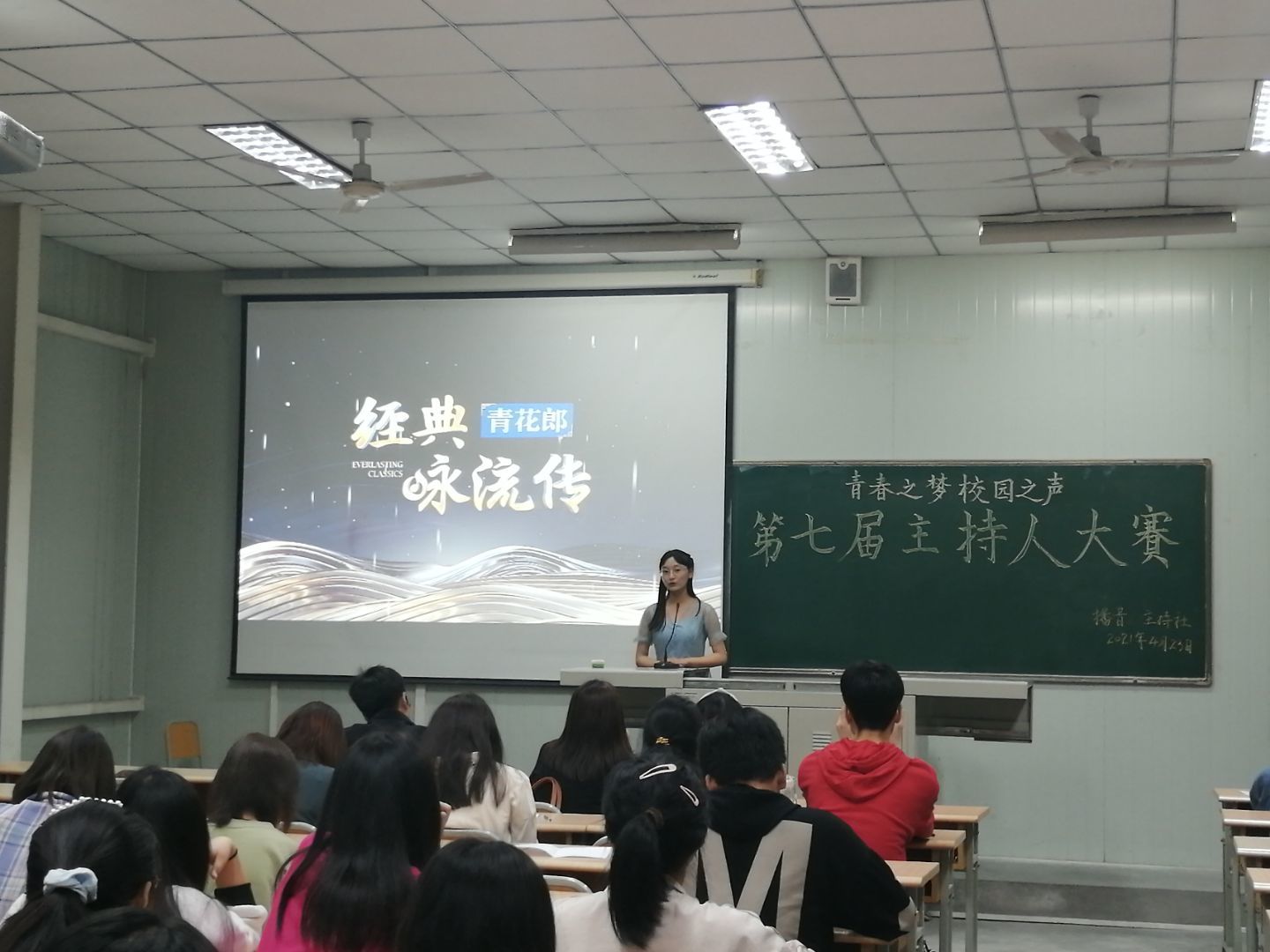 4月23日晚,由pp电子游戏平台网站播音主持社举办的“青春之梦,校园之声”第七届主持人大赛决赛在江南校区1024教室如期举行。出席本次大赛的评委有pp电子游戏平台网站邸玲老师、崔瑜老师和社团指导老师黄治强老师。播音主持社全体社员、参赛选手的亲友团以及兴趣观众观看了本次比赛。
