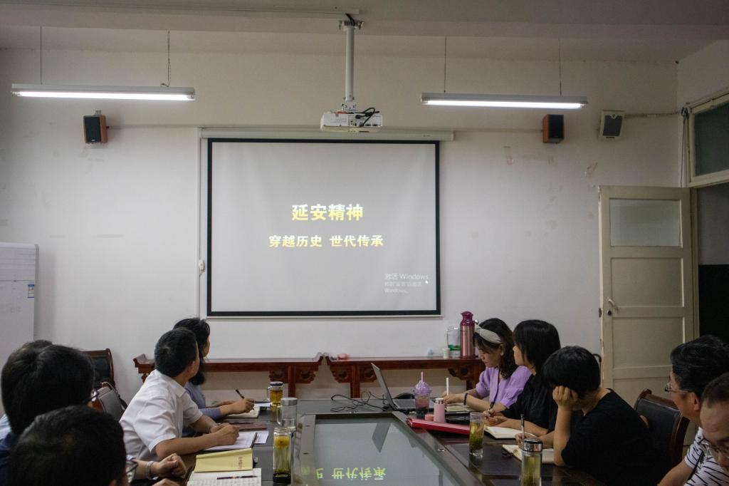 在党史专题学习中,与会人员共同观看了《延安精神:穿越历史 世代传承》微党课视频,感受延安精神传承出的伟大力量和宝贵精神财富。杨行玉结合党史学习专题,领学了习近平同志《论中国共产党历史》相关篇目,着重从“继续从延安精神中汲取力量”进行原原本本地学习,纪检委员、汉语言文学系主任李婷从文学作品的视角带领学习贺敬之诗歌《回延安》,声情并茂的朗诵使与会人员对延安精神有了更深刻的理解。