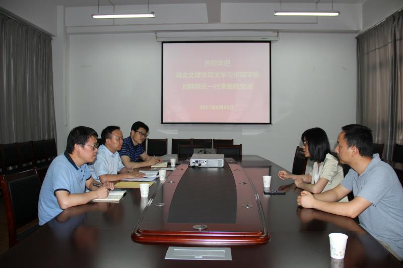 2021年6月24日,湖北文理学院pp电子游戏平台网站刘群院长一行来pp电子游戏平台官网访问交流。pp电子游戏平台网站院长杨运庚、党总支书记芦伟、副院长朱云在陕南民间文化研究中心会议室与来访人员进行了座谈交流。