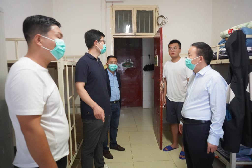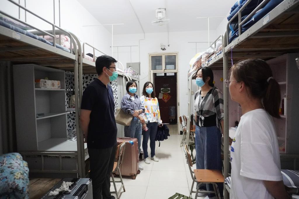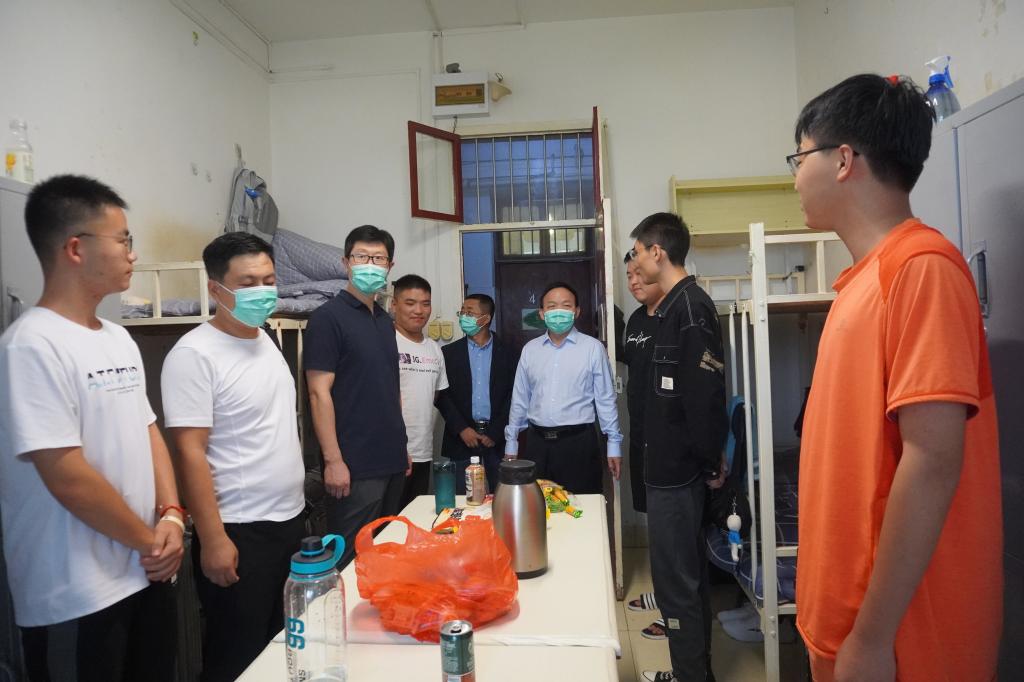 2021年8月28日17:00,大雨如注,pp电子游戏平台网站院长杨运庚、党总支书记芦伟、副院长李婷带领辅导员和综合办公室主任前往新生宿舍,看望2021级已报到入住的新同学。
