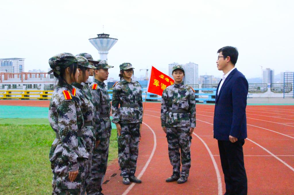 训练休息间隙,院学生会鲍克娅、赵思琪等同学为新生表演了小节目,调节军训紧张严肃的氛围。领导和老师向参训新生表示亲切的问候,对新生们在军训中所展现出的坚韧不拔的优良品质给予了充分肯定,鼓励同学们要将军训中克艰奋进、永不言弃的精神延续到接下来的学习与生活中,不负韶华、勇敢追梦。老师们向承担pp电子游戏平台官网军训任务的教官表达了衷心的感谢。