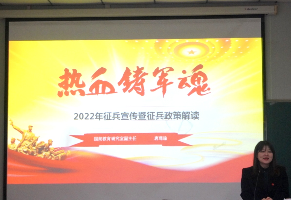 受邀出席的唐璟瑜老师以“携笔从戎,无上光荣”为主题,从参军对个人体能锻炼、精神品质塑造、战友情谊及参军入伍政策要求等方面详细解读了应征入伍相关事项,针对报名流程、体检要求等问题为现场同学们答疑解惑。唐老师号召广大适龄青年要以国家需要为己任,积极响应号召,立志到祖国最需要的地方去锻炼,以实际行动投身军营、报效祖国。希望各位同学能够利用好新形势下国家的各项优惠政策,积极参军入伍,保家卫国。