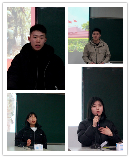 参会的四名退伍学生相继介绍了各自的军营经历,分享了在部队的收获与体会。“当兵后悔两年,不当兵后悔一辈子”,新兵连的磨炼、下连队的适应、退伍的留恋是四位同学满满的回忆。两年军旅生涯不仅为国防建设作出了贡献,更重要的是锻炼了军事素质、丰富了人生阅历,特别是在磨炼意志、团结拼搏和战友情怀等方面收获了宝贵的精神财富。他们表示:从美丽的大学校园步入整齐划一的军营,是梦想,是勇气,是奉献,在部队这个大熔炉,大家百炼成钢,无悔选择,无悔青春。复学后,将继续发扬人民军队的光荣传统,用自身的行动为身边的同学做好表率。在未来的学习、工作和生活中,将以百倍的信心和万分的努力去迎接更大的挑战,用汗水去谱写美好的明天。