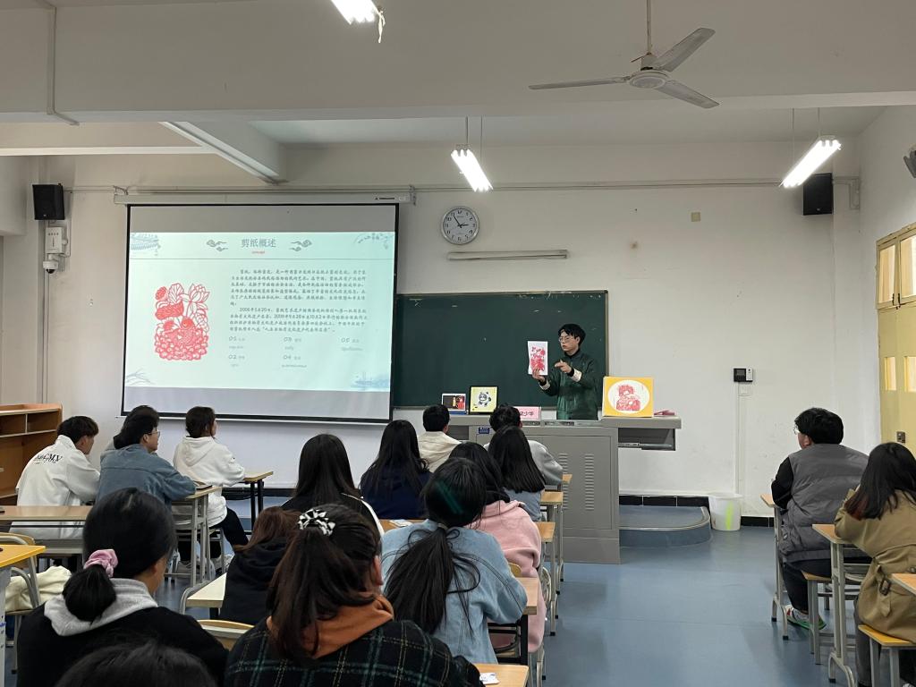 3月8日下午,马克思主义学院邀请pp电子游戏平台网站学生、西安市非遗保护协会青年剪纸艺术创作者梁少华在1501教室为同学们分享剪纸文化。马克思主义学院21级部分学生参与本次活动。