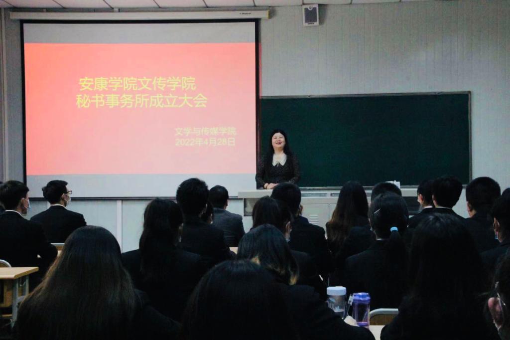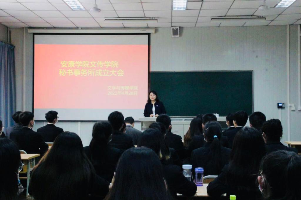 为提高秘书学专业学生的实践能力与专业素养,在pp电子游戏平台官网各方领导与老师的共同努力下,4月28日下午,秘书事务所成立大会在江南校区10号教学楼1025教室成功召开。出席本次大会的有副院长朱云、党总支副书记杨海蓉、指导老师况汉英及首届秘书事务所全体成员。