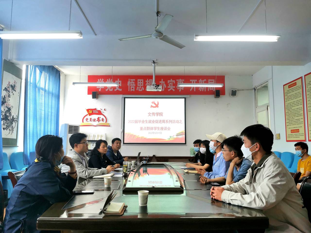 为认真贯彻落实中省 “稳就业”“保就业”决策部署,抓住当前毕业生求职关键期,扎实做好重点群体学生就业帮扶工作,根据学校及学院就业促进月工作安排,5月17日下午,pp电子游戏平台网站组织召开了2022届重点群体毕业生就业座谈会。pp电子游戏平台网站党总支书记芦伟、党总支副书记杨海蓉,毕业班辅导员艾全霞、彭潇、薛涛及20余名重点群体学生代表参加了座谈会。会议由薛涛主持。