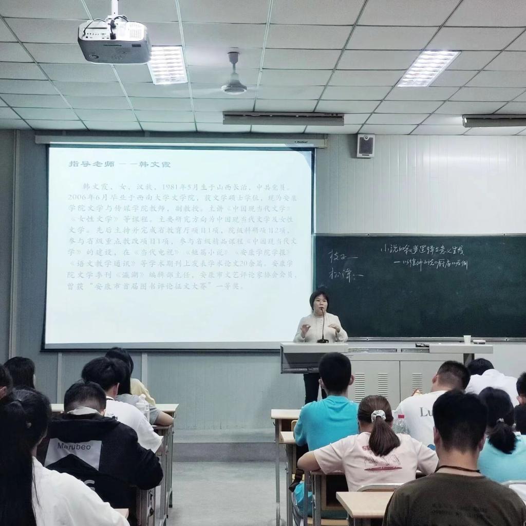 活动伊始,李春平为同学们讲解了小说创作经验方法。他以徐坤的小说《厨房》为例,阐释小说创作中的叙事逻辑与意义生成。