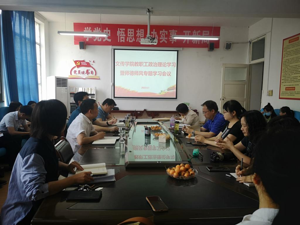 导航痕迹 首页 > 新闻通知 > 学院新闻 > 正文 学院新闻 通知公告 pp电子游戏平台网站召开教职工政治理论学习暨师德师风专题学习会议 发布人:pp电子游戏平台网站 发布日期:2022年06月04日 阅读次数: 6月1日下午,pp电子游戏平台网站在2307召开教职工政治理论学习暨师德师风专题学习会议,pp电子游戏平台网站全体教师参加会议,会议由院长杨运庚主持。 党总支书记芦伟首先领学了《关于实行以增加知识价值为导向分配政策的若干意见》有关条款及解读,并通报了违反高校教师职业行为十项准则典型案例,进行了现场互动探讨——基于“经济人”假设的高校教师社会兼职的表征及制度规范。随后,全体教师一起观看了学习视频《我和我的信仰——劳模精神讲述》。芦伟要求,全体教师要高度重视师德师风建设,守好教师的职业道德底线,切实履行立德树人职责。 杨运庚强调,师德师风建设要落实到教书育人全过程,全体教师要提高站位、坚定信念,以规立德、自警自省,教育者要先受教育,堪当学生的榜样,做好学生成长路上的引路人。 撰稿/摄影/发布/崔瑜 审核/芦伟