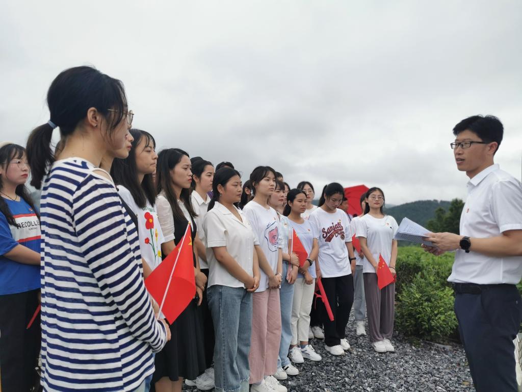 参观结束后,全体党员整齐列队,面对党旗庄严宣誓,重温入党誓词。党总支书记芦伟为全体党员讲授了题为《从中国共产党入党誓词的演变 深刻理解共产党人的初心使命》微党课。他寄语所有学生党员要深刻了解近代以来中国人民和中华民族不懈奋斗的光荣历史和伟大历程,坚定共产主义理想信念,牢记党的宗旨,永葆共产党员的先进性,永做走在时代前列的奋进者、开拓者、奉献者!