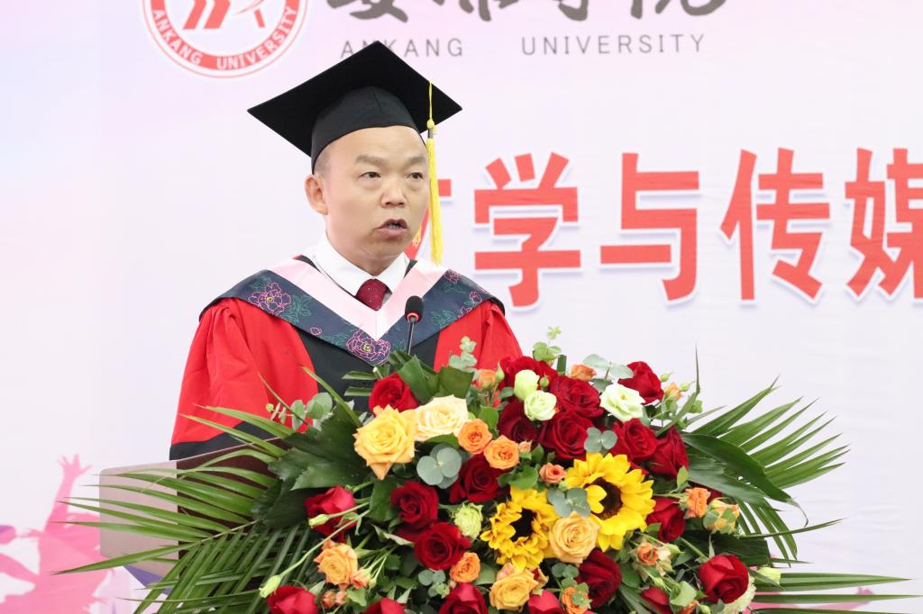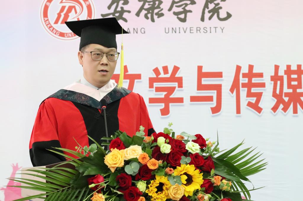 pp电子游戏平台网站院长杨运庚致毕业辞,他代表学院向圆满完成本科学业的全体毕业生表示热烈的祝贺,向全体教师的辛勤付出表示诚挚的感谢。他指出:“虽然疫情改变了大学生活本来的样子,但是你们奋勇争先、尚学尚行劲头不减;你们创下pp电子游戏平台网站历年最好的考研成绩;你们携笔从戎,报效祖国、守卫边疆;你们积极为西部地区、乡村基础教育奉献青春;你们无私奉献、勇于挑战、敢于担当、收获成长,你们用实际行动践行‘请党放心、强国有我’的铮铮誓言”。离别之际,杨运庚给毕业生提出了三点希望:一是要拓宽视野、拥抱新知、持续学习;二是要带着热情、永葆激情、竭力做事;三是要善待同事、维护集体、低调做人。他勉励全体毕业生要发扬“苟日新、日日新、又日新”的勤于自警、不断创新、日就月将的精神,志存高远、砥砺前行。