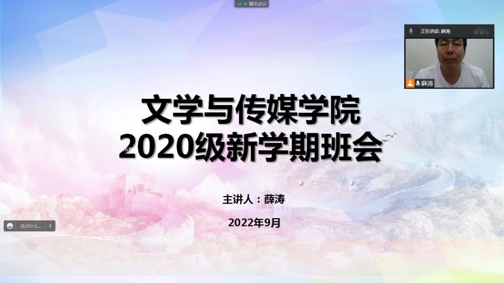 2020级辅导员辅导员薛涛分别从新学期大家状态调整、疫情防控、防范电信诈骗、文明上网等方面进行宣传引导,对《pp电子游戏平台网站“中学语文卓越师资班”人才培养计划行动方案(试行)》文件进行解读,解答教师资格证报名考试相关问题,并就线上教学向全体同学提出纪律要求。