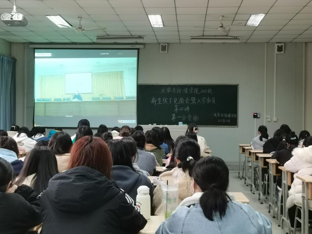 2022年11月16日下午,pp电子游戏平台网站在图书馆6楼报告厅隆重举行2022级新生见面会及入学教育第四讲。因为疫情,见面会采用线上与线下结合的方式进行,设置一个线下主会场、两个线上分会场。pp电子游戏平台网站领导班子、系主任、两办主任、新生辅导员及全体2022级新同学分别以线上线下的形式参会。见面会由pp电子游戏平台网站党总支副书记杨海蓉主持。