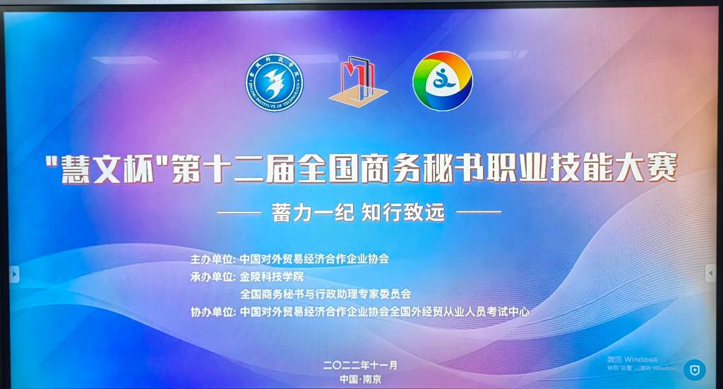 2022年11月19日,由中国对外贸易经济合作企业协会主办,金陵科技学院和全国商务秘书与行政助理专家委员会承办,中国对外贸易经济合作企业协会全国外经贸从业人员考试中心协办的慧文杯”第十二届全国商务秘书职业技能大赛顺利举行。