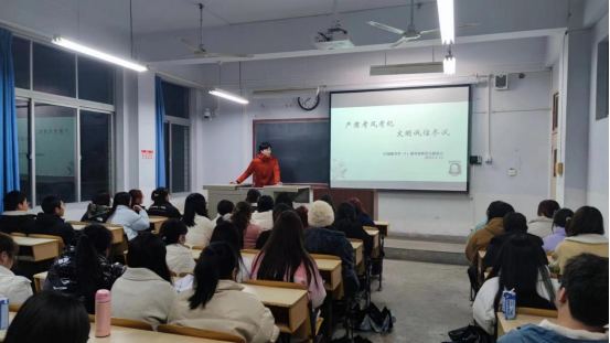 导航痕迹 首页 > 新闻通知 > 学院新闻 > 正文 学院新闻 通知公告 pp电子游戏平台网站组织开展2022级考风考纪主题班会活动 发布人:pp电子游戏平台网站 发布日期:2023年02月15日 阅读次数: 为端正考风,严肃考纪,加强学风建设,营造文明、诚信考试的良好氛围,2023年2月12日晚pp电子游戏平台网站举办22级考风考纪主题班会活动,辅导员李欣逸老师就《pp电子游戏平台网站学生手册》相关内容向同学们再三强调考风考纪,对考试违纪相关处理办法详细说明,希望每一个同学都能端正考试态度,诚信做人,加深对考试舞弊带来的严重后果的认识。通过本次主题班会,将考试相关规定和要求传达给每一位同学,督促全体学生认真复习、积极备考,用真实可信的成绩展现自己学习能力和学习效果。 撰稿/摄影/魏渝璧 审核/杨海蓉 发布/崔瑜