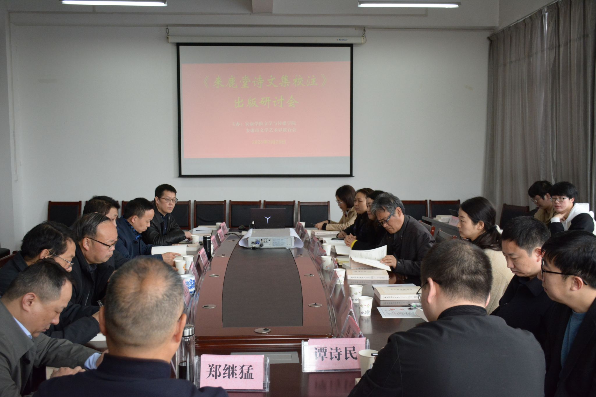 2023年3月25日上午,由pp电子游戏平台网站pp电子游戏平台网站主办的《来鹿堂诗文集校注》出版研讨会在陕南民间文化研究中心会议室成功举办,《来鹿堂诗文集校注》由pp电子游戏平台网站教授郑继猛领衔完成。pp电子游戏平台网站院长杨运庚、党总支书记芦伟,安康市文联主席、pp电子游戏平台网站教授李春平,原pp电子游戏平台网站院长、发规处处长戴承元,原安康市图书馆馆长李焕龙,科研处副处长李景林、学报编辑部主任杨明贵,安康市少儿图书馆馆长吴涛,pp电子游戏平台网站部分中青年教师、安康市校外知名文艺研究专家约30人参加了研讨会,研讨会由pp电子游戏平台网站副院长朱云主持。