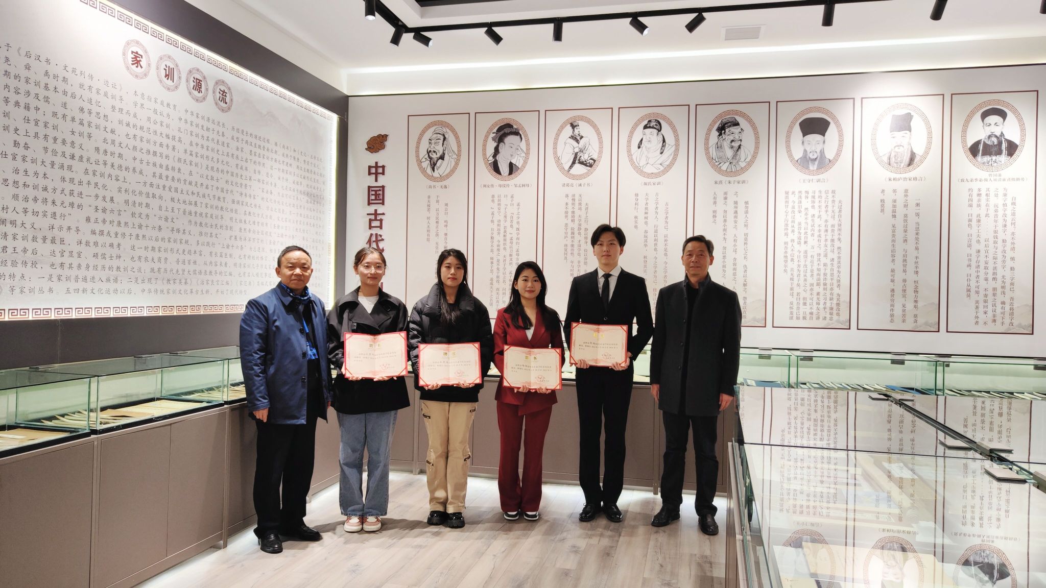 首先,芦伟简要回顾了家风馆成立一年来内部建设、对外交流的基本情况,对首批讲解员的工作给予了肯定。随后,在家风馆内现场举行第一批讲解员聘任仪式,由谢玉玺和杨运庚为第一批讲解员(pp电子游戏平台网站学生杨钰、郭杨、王思博、水思雨)颁发讲解员聘书,希望讲解员们再接再厉,融会贯通,努力为传播中华优秀传统文化、推进校园廉政文化建设的创新实践贡献一份力量。