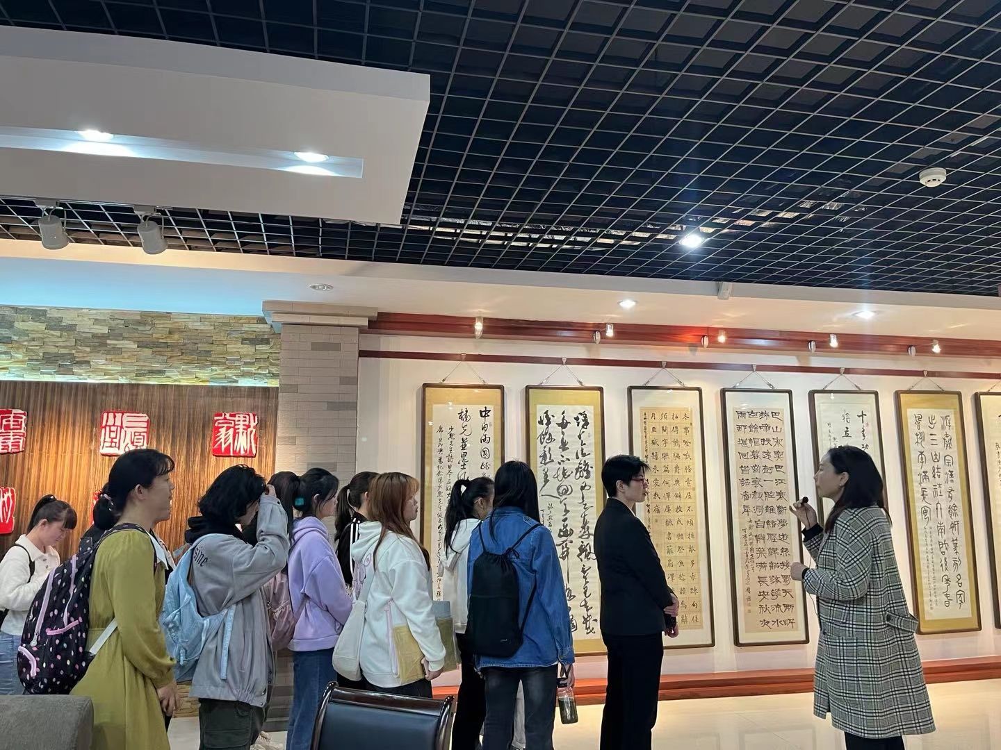 宦咏梅带领大家了解陈少默老先生的生平事迹,为社员们讲解陈少默先生的书法作品真迹、书法底稿及其所用过的印章等。社员们在老师的讲解下,逐渐加深了对书法的理解和兴趣,了解到书法文化的魅力。