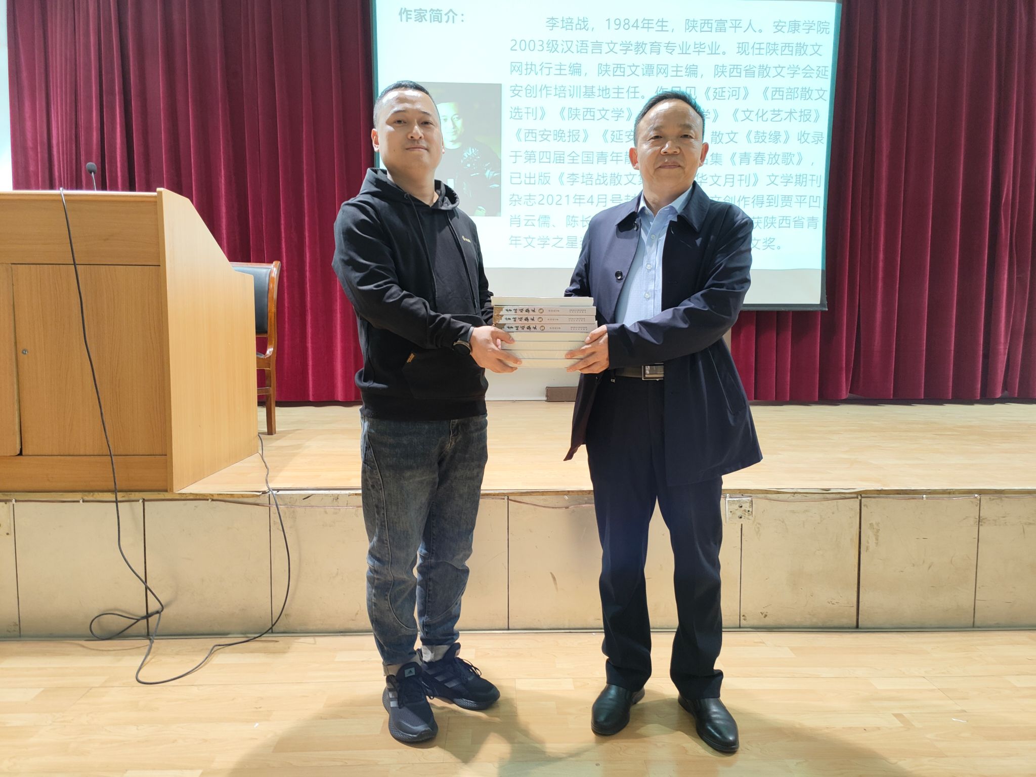 报告会开始前,杨运庚代表学院聘请李培战为pp电子游戏平台网站学生文学创作兼职指导老师并为其颁发了聘书。李培战向我校图书馆和pp电子游戏平台网站赠送了他近期文学创作作品《李培战散文集》。