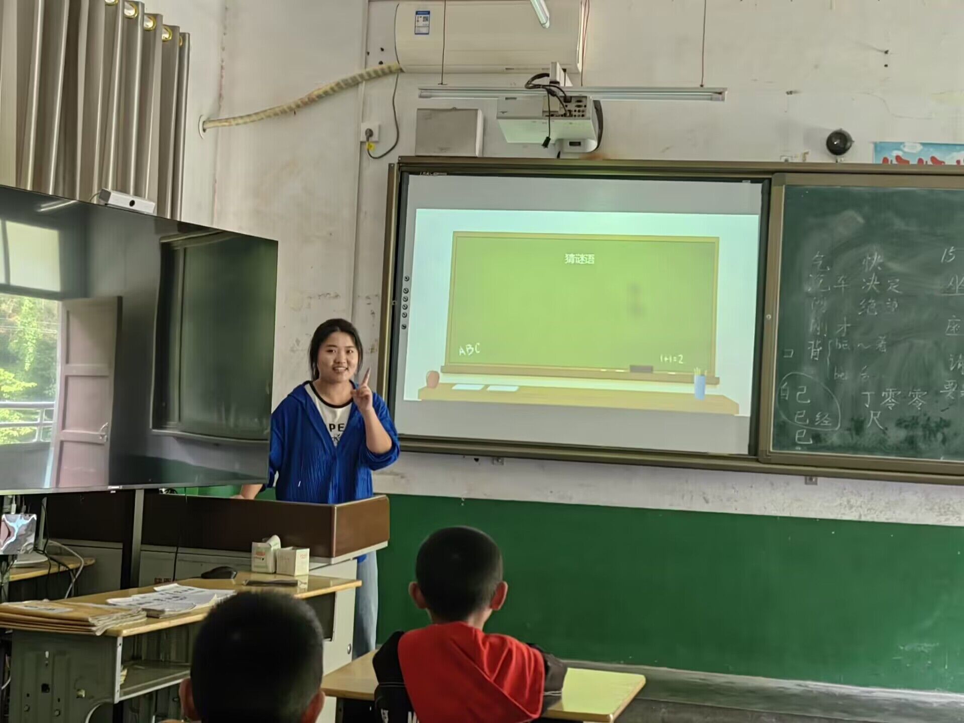 烛光支教队队员史紫田同学带领小朋友们体验了一堂生动有趣的《剪羊毛》线下课,课堂轻松愉悦,师生互动热烈。课间休息时间,志愿者与孩子们玩起了“爱的抱抱”“萝卜蹲”等小游戏,快乐的笑声此起彼伏。在游戏过程中,志愿者了解了孩子们的兴趣爱好和生活,孩子们也收到了志愿者们带来的小礼物,拉近了志愿者与孩子们之间的距离。