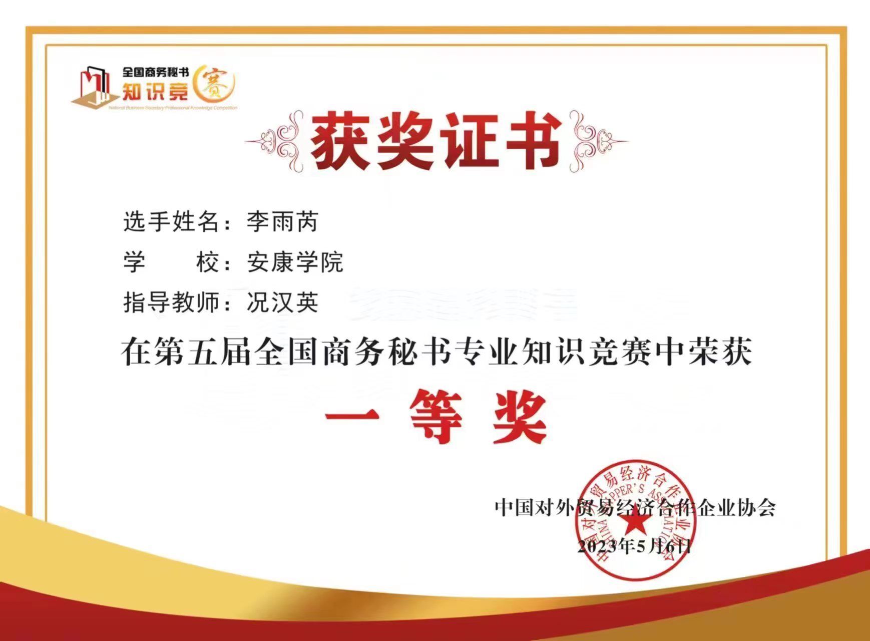 本次知识竞赛由中国对外贸易经济企业合作协会主办,采用网络闭卷机考形式,参赛单位涉及全国六十六所本科、职业院校,参赛人数多达五千余名。pp电子游戏平台网站高度重视此次竞赛,赛前多次动员秘书学专业学生积极参赛,同学们也踊跃报名,积极备赛。经过师生共同努力,在此次竞赛中取得了较好的成绩。由况汉英老师指导的李雨芮同学获得此次竞赛一等奖;王雪纯、夏萃萃、梁建芳同学获竞赛二等奖;郑益凡、王艺凡同学获得竞赛三等奖。