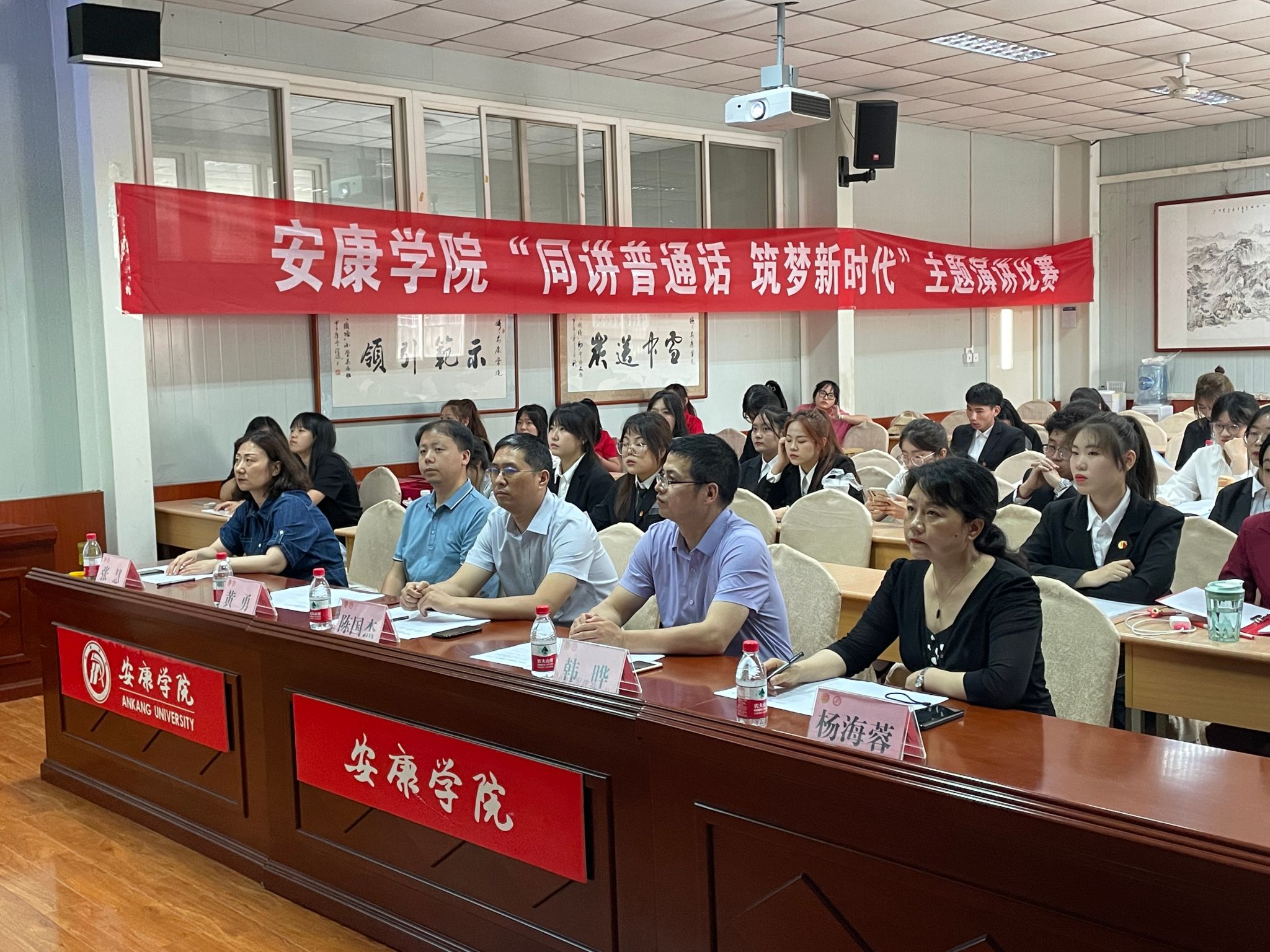 6月12日,我校在江南校区举办了“同讲普通话,筑梦新时代”主题演讲比赛。本次比赛是配合陕西省教育厅、省语委办组织开展的陕西省大中小学“同讲普通话 筑梦新时代”主题演讲比赛而举办的校级演讲比赛,由教务处、团委和pp电子游戏平台网站共同主办。经过前期各院系选拔推荐,共有13个院系26名选手入围决赛。大赛由党委组织部、宣传部、团委、教务处、pp电子游戏平台网站等二级单位相关负责同志担任评委。