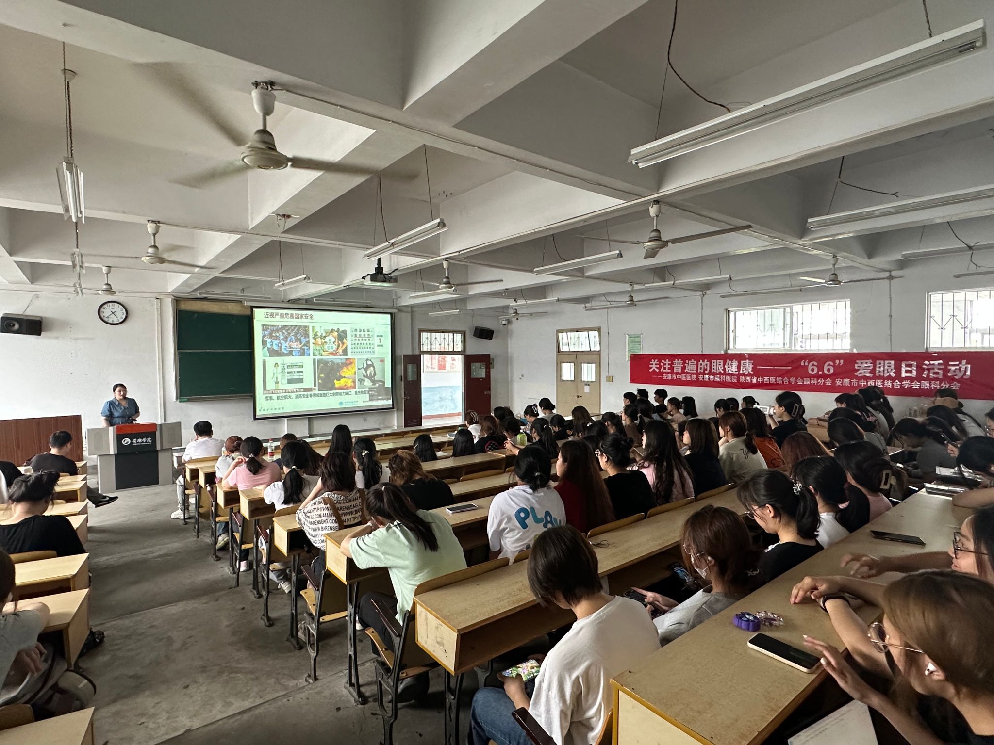 为进一步普及科学用眼知识,提高师生视力健康水平,6月6日,pp电子游戏平台网站联合后勤保障处在江南校区一号教学楼1510教室举办“全国爱眼日”健康知识讲座,此次科普讲座邀请安康市中医医院眼科医师粟蓥担任主讲,pp电子游戏平台网站组织近200名师生聆听了讲座。