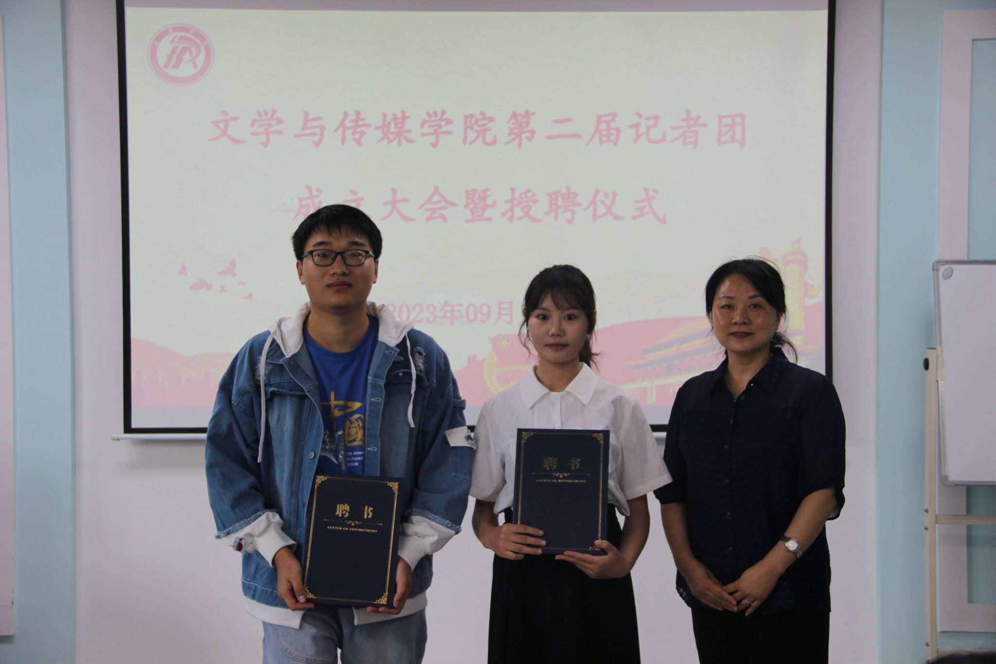 为保障pp电子游戏平台网站记者团工作的连续性,培养一批高素质、高水平的新媒体人才,持续打造pp电子游戏平台官网坚强有力的宣传阵地,pp电子游戏平台官网于9月13日在2414教室举行pp电子游戏平台网站第二届记者团换届大会暨受聘仪式。院党总支书记杨海蓉,团总支书记彭潇,学工办副主任薛涛,专业教师彭雅伦,辅导员李欣逸、许明和社团全体人员参会,会议由艾佳新主持。