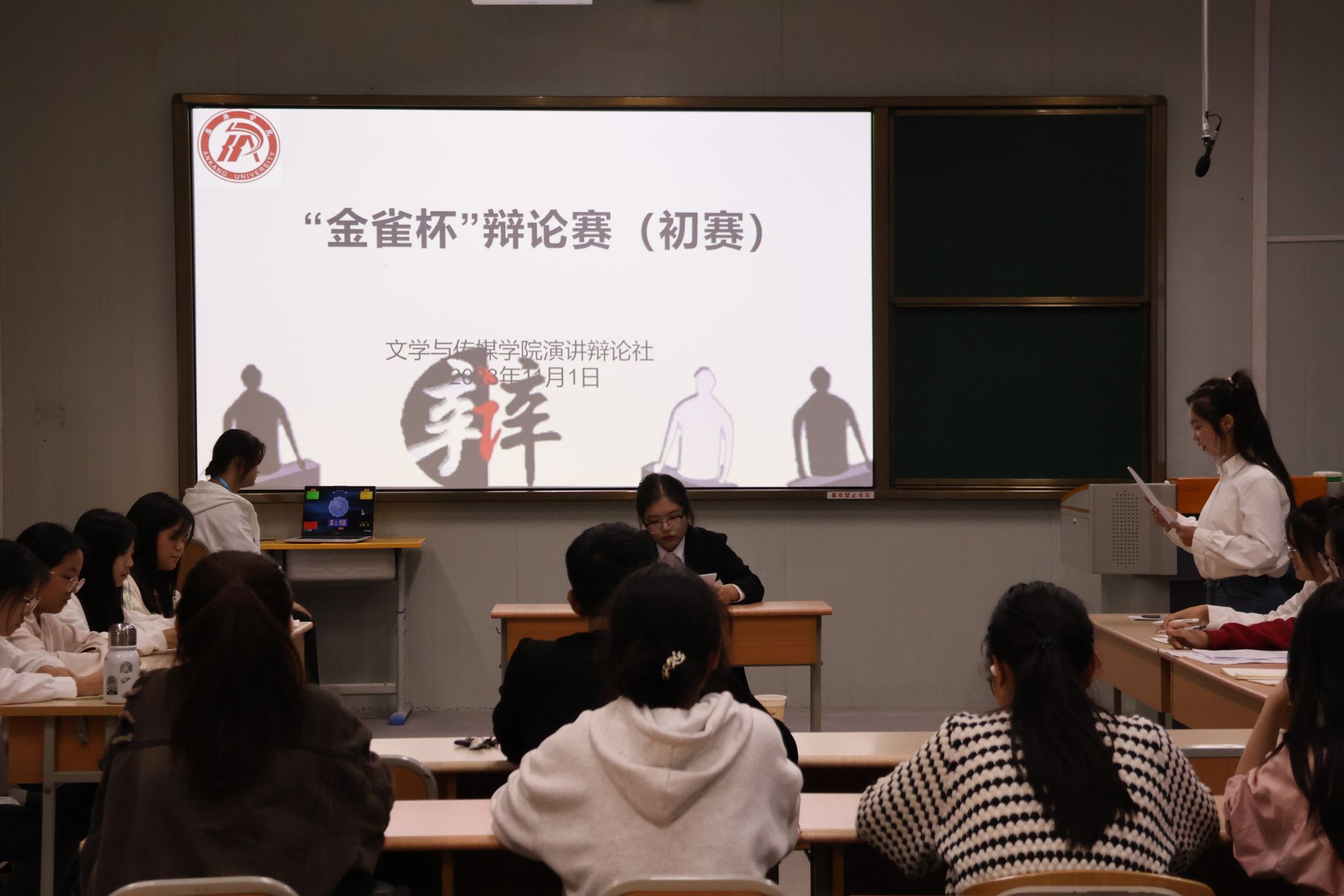 为培养学生思维能力和语言表达能力,向pp电子游戏平台网站第十四届“金雀杯”大学生辩论赛筛选后备人才,展现新时代青年面对热题时勇于探求、深入思索的精神风貌,2023年11月1日下午,文传学院在1026、1027、1028教室举办了第十四届“金雀杯”辩论赛院系初赛。pp电子游戏平台官网党总支副书记杨海蓉,演讲辩论社指导老师余珊、团总支书记彭潇、新生辅导员许明与pp电子游戏平台官网部分学生参与此次活动。