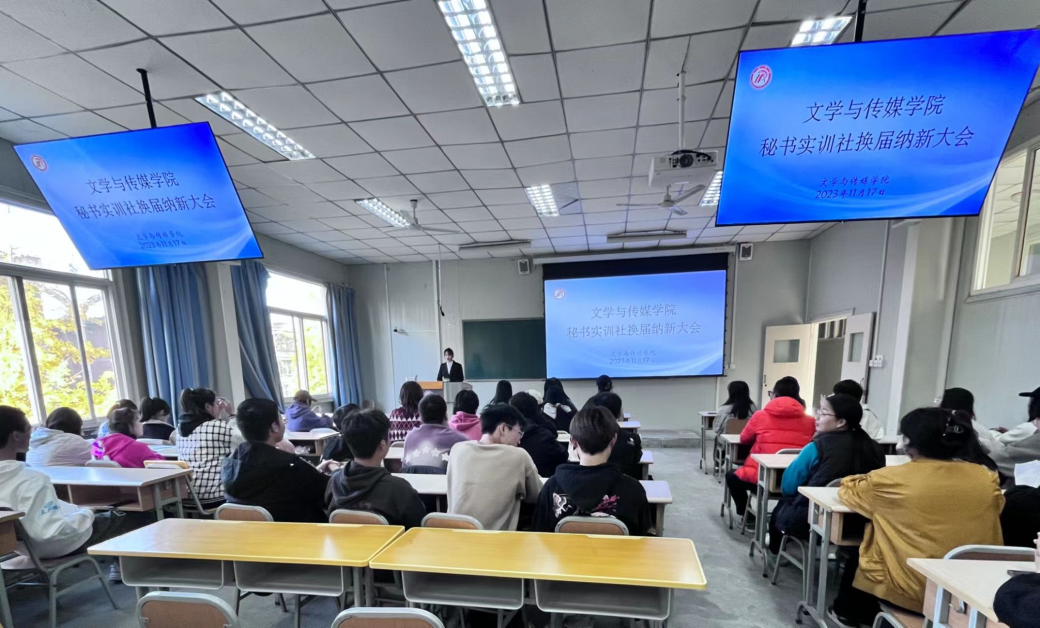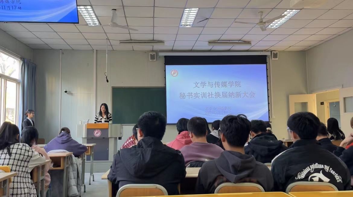 为加强pp电子游戏平台官网秘书学专业学生实训实践,促进学科交流,搭建更宽阔的秘书实务平台,2023年11月17日下午4点30分,pp电子游戏平台网站秘书实训社在十号楼1028教室顺利举办了换届纳新大会,指导老师况汉英应邀出席本次会议,秘书学2021级、2022级以及2023级全体同学参会,秘书学2021级陈玉静主持。