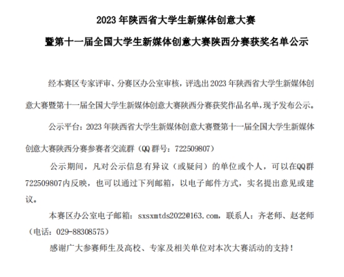 2023年11月20日,陕西省大学生新媒体创意大赛暨第十一届全国大学生新媒体创意大赛陕西分赛获奖名单公示,pp电子游戏平台网站pp电子游戏平台网站短视频作品喜获佳绩!